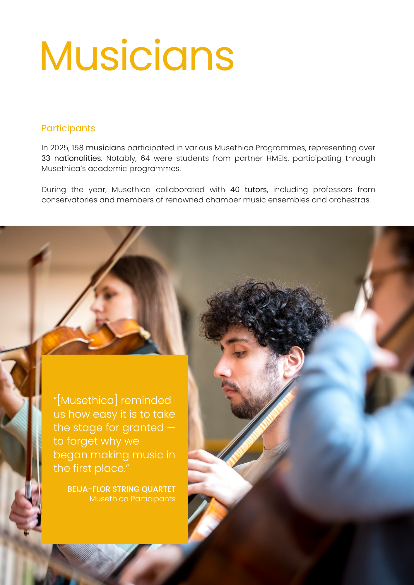 Together, these developments in 2025 reflect the shared commitment of Musethica’s partners, tutors, musicians, and supporters to combining performance training with social engagement and innovating higher music education.